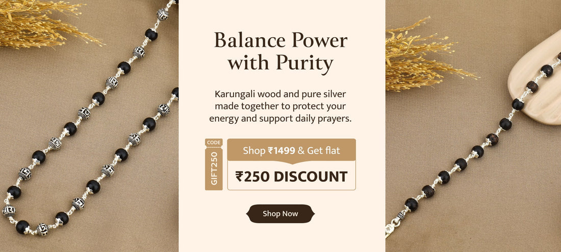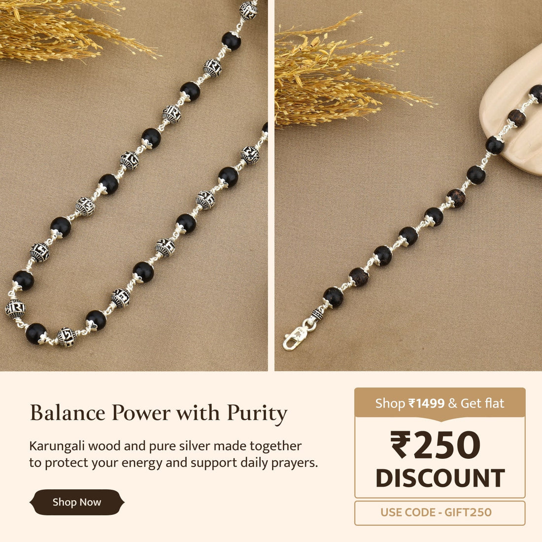 Karungali, made from sacred ebony wood, is prized for its strong grounding and protective energy. Wearing Karungali jewelry from Prinjal helps shield you from negative energies and emotional stress, promotes mental clarity and focus, and balances your root chakra for stability and confidence.