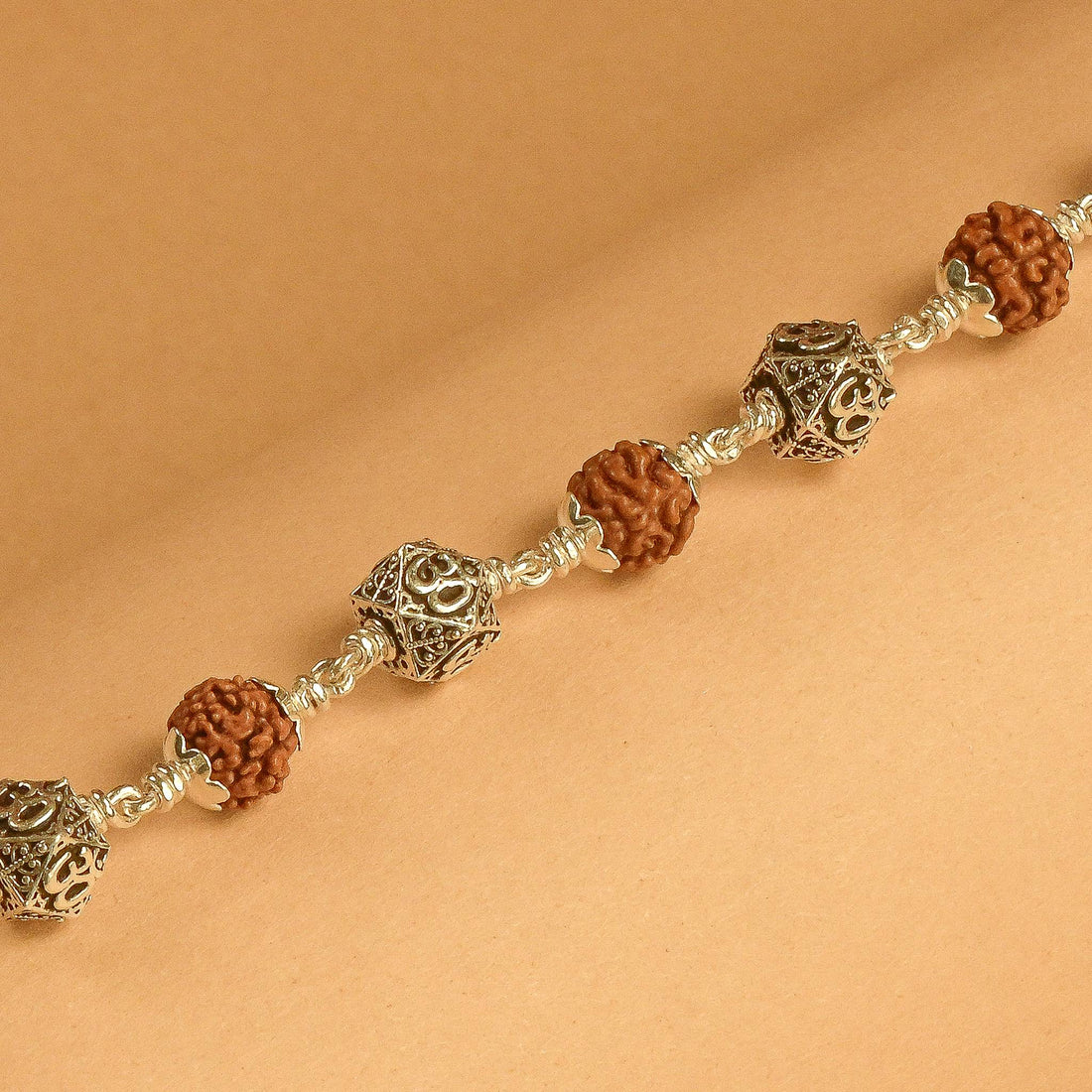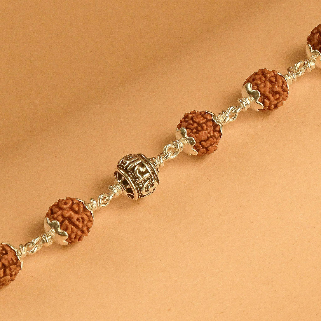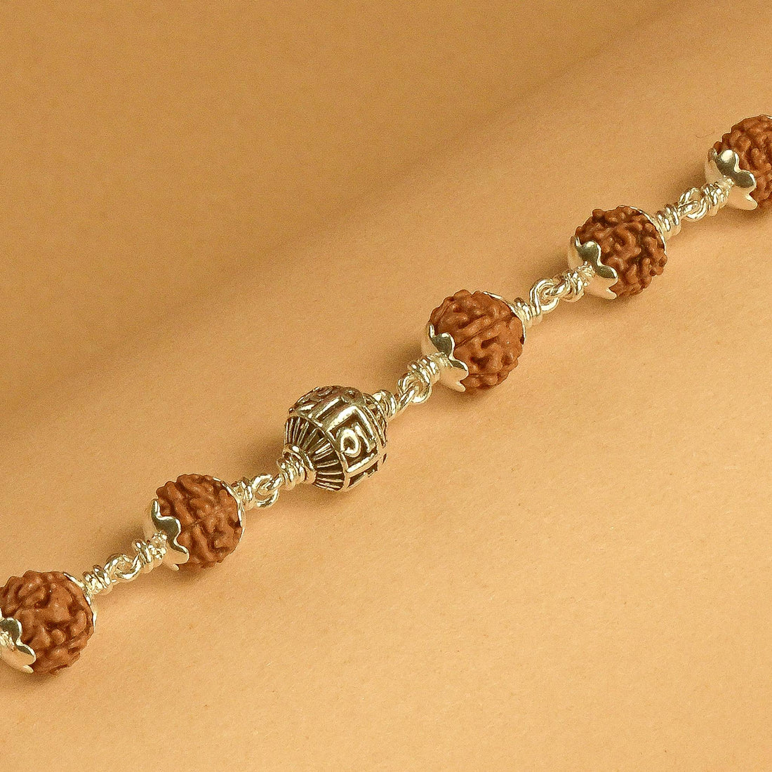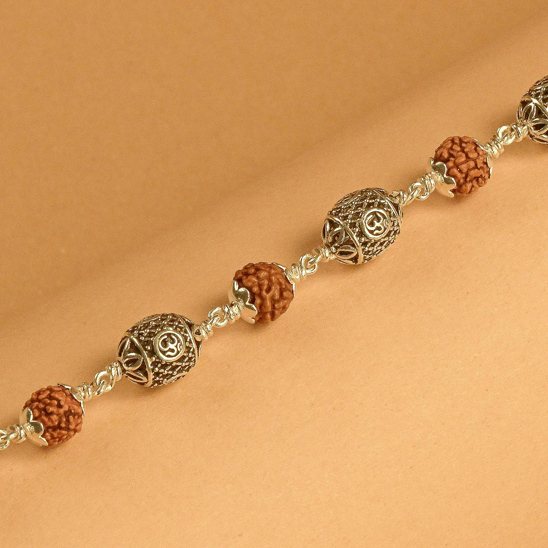 Rudraksha With Om Namah Shivay Beads Silver Bracelet