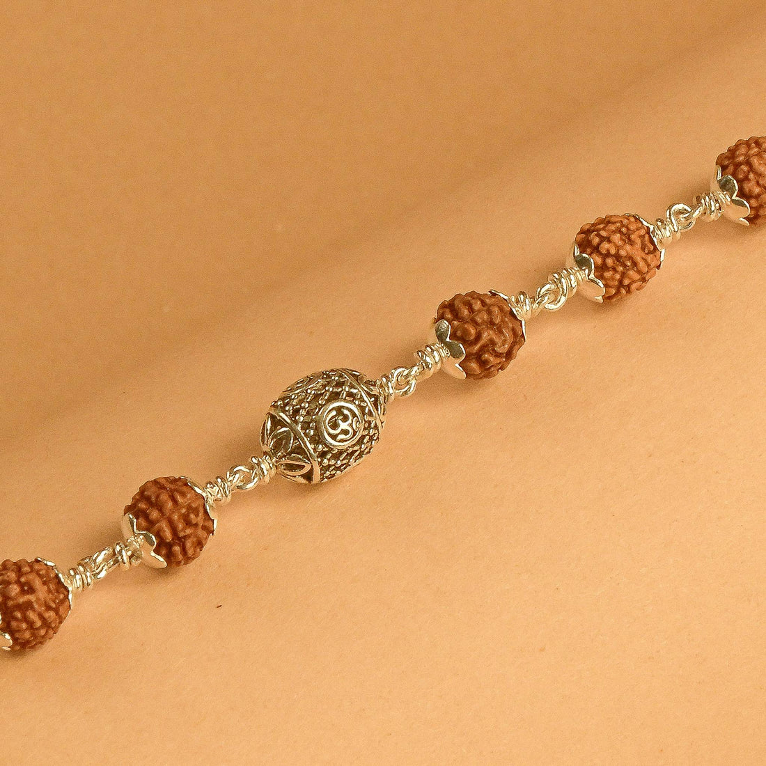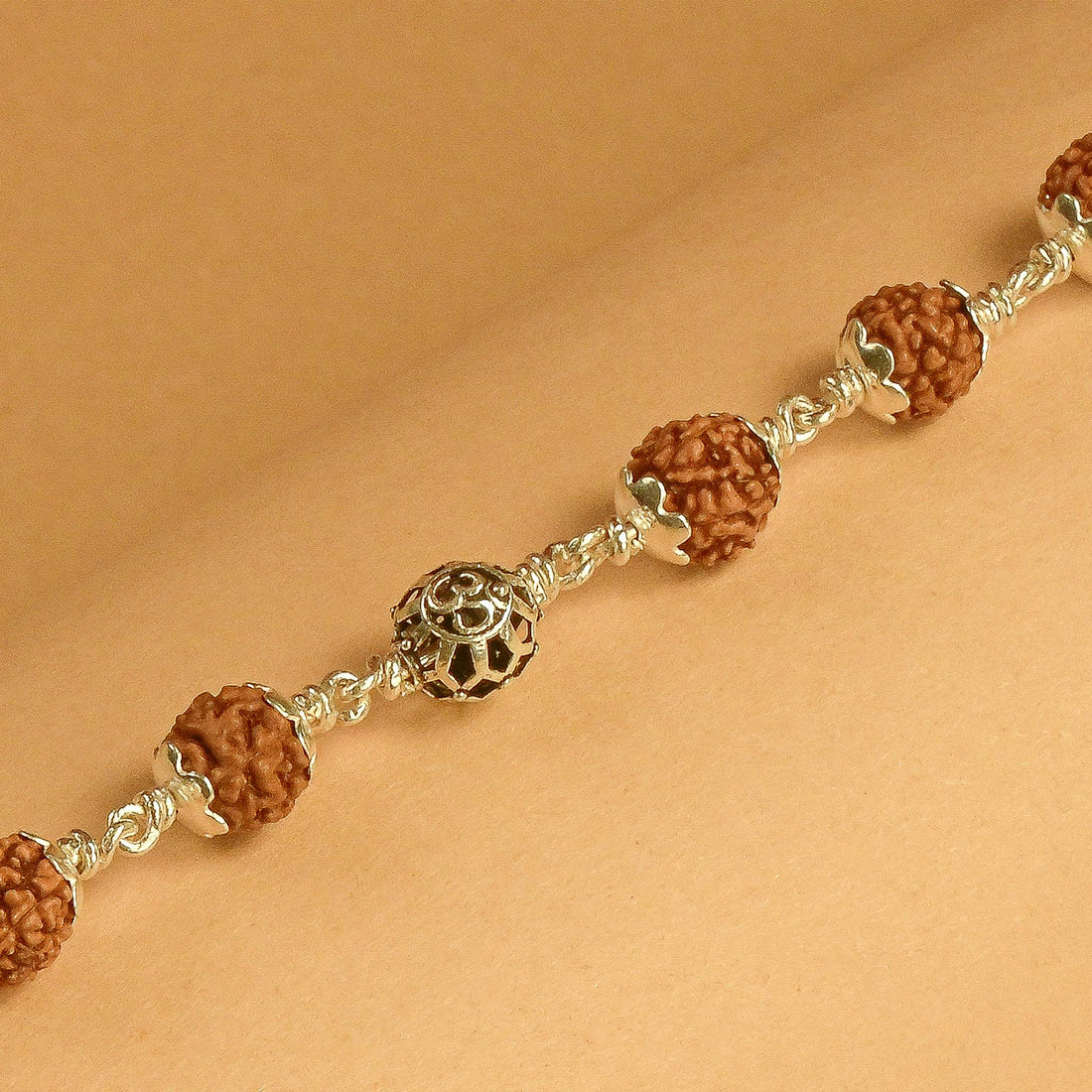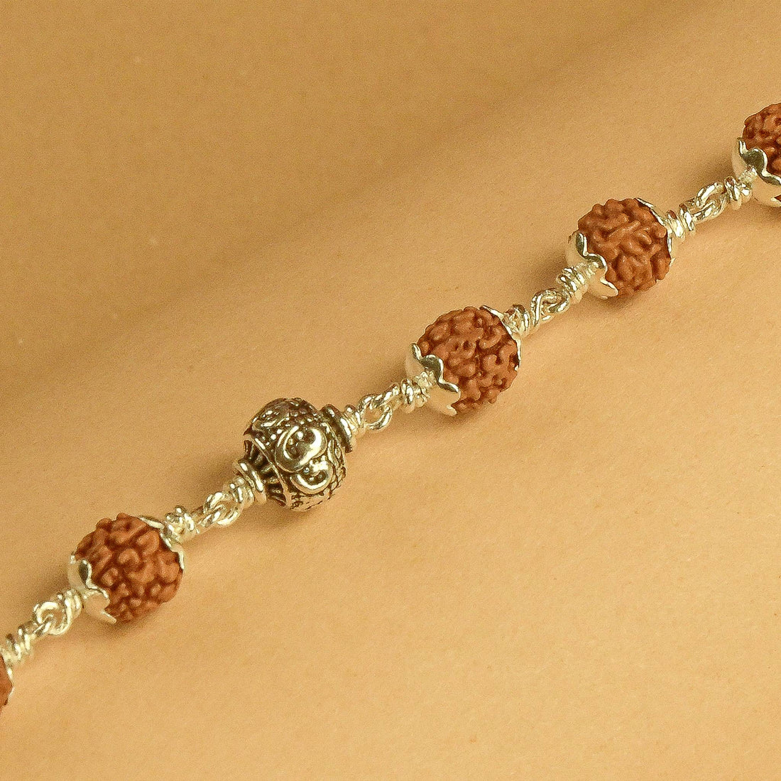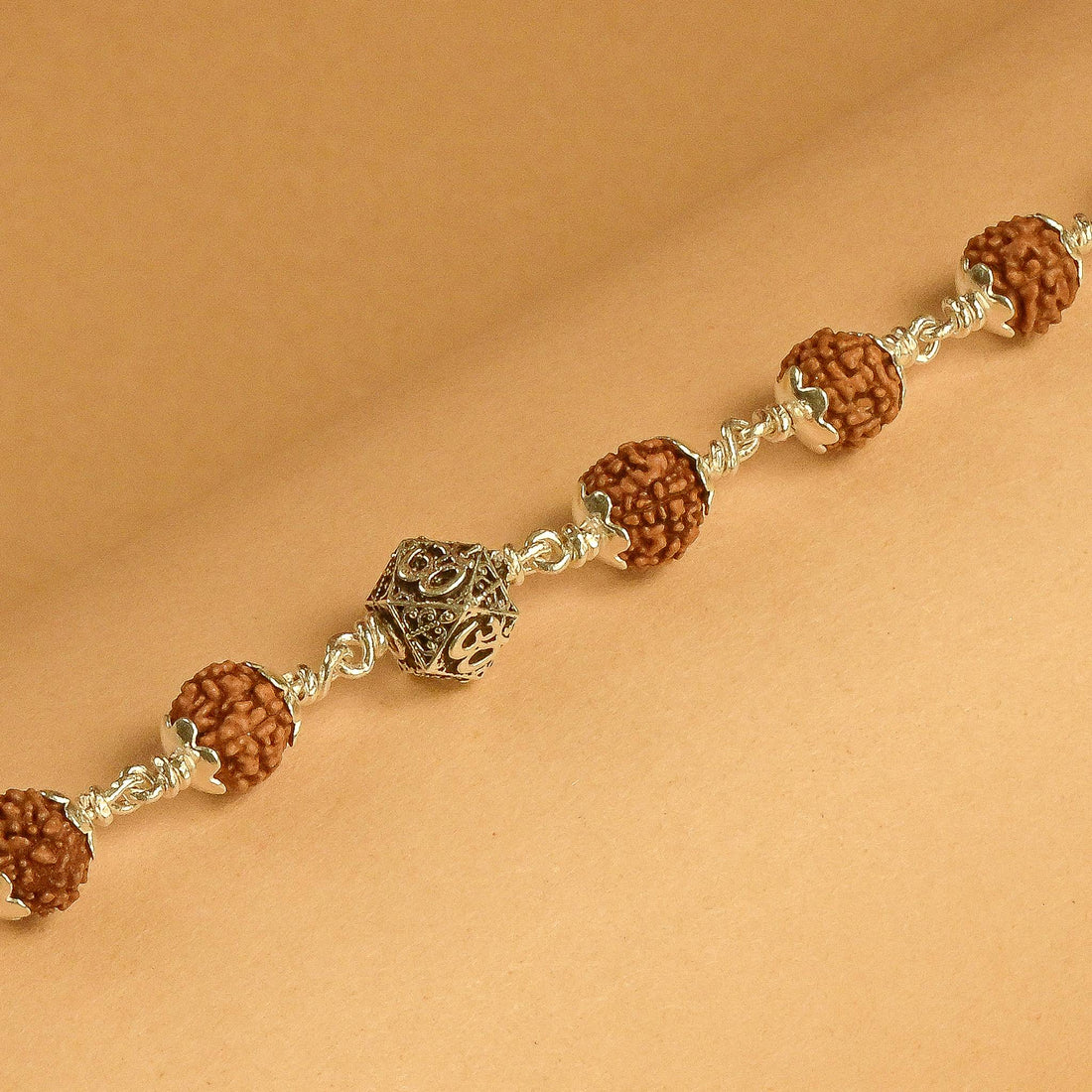 Rudraksha With Om Namah Shivay Beads Silver Bracelet