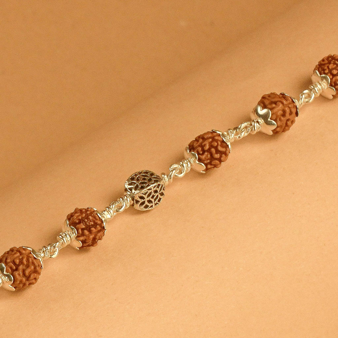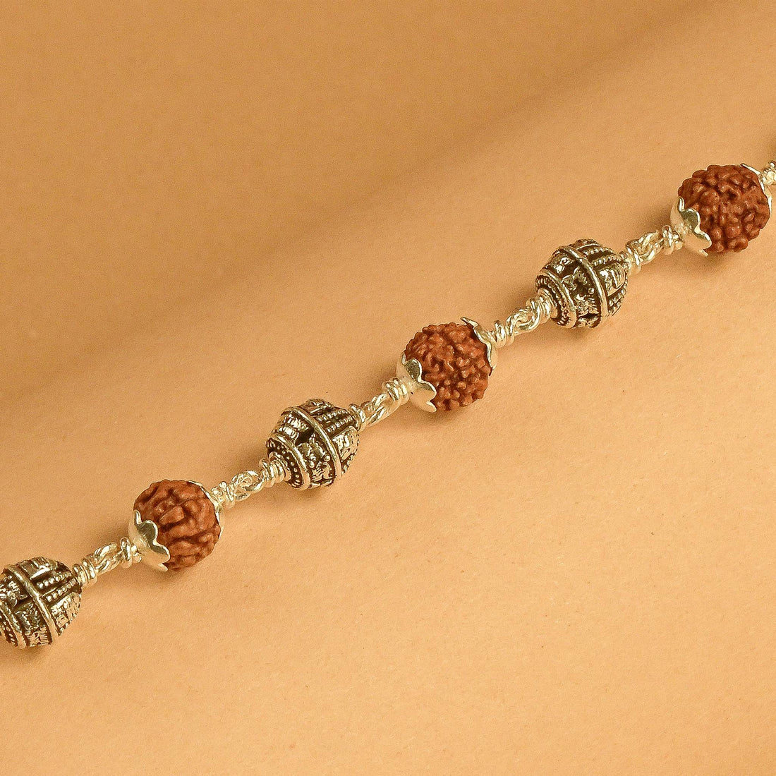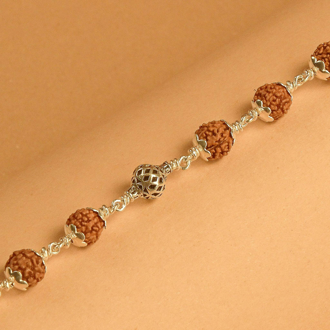 Rudraksha With Hollow Mesh Silver Beads Bracelet