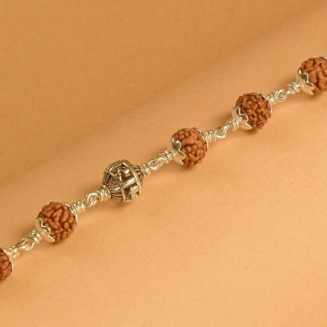 Rudraksha With Shree Hari Silver Bead Bracelet