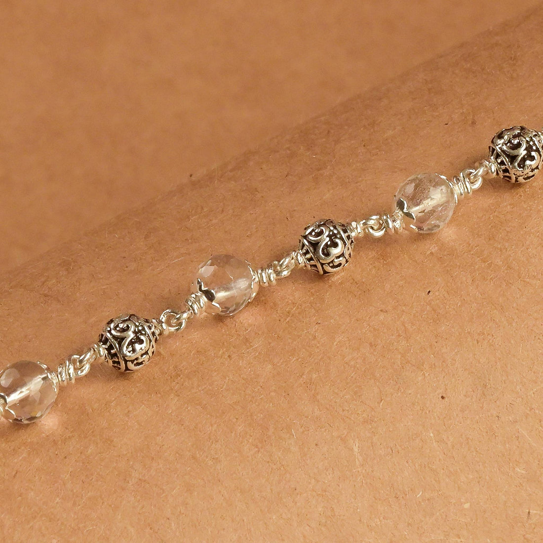 Sphatik Diamond Cut Beads Silver Bracelet: