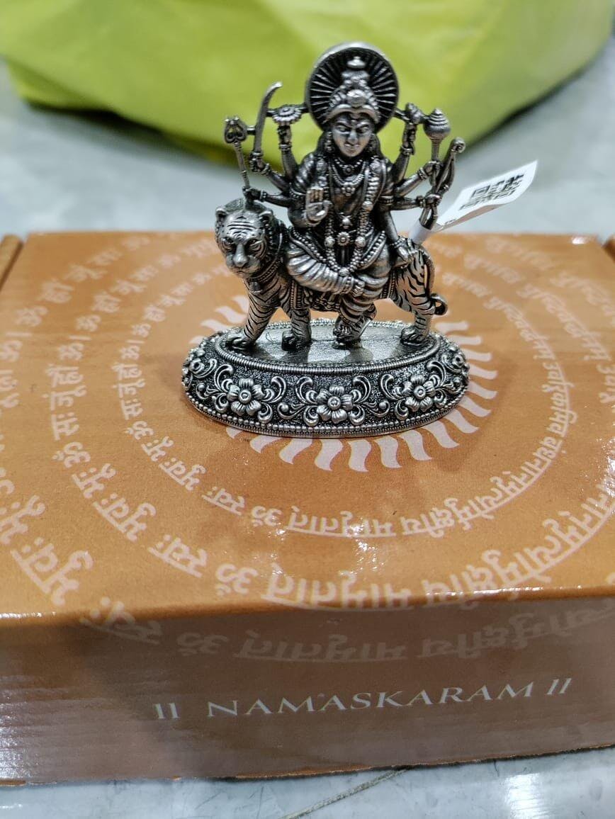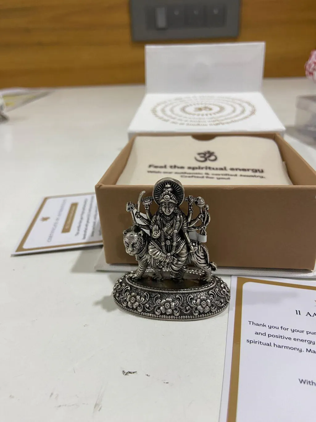 Let this Antique Silver Durga Idol become the center of devotion and inspiration in your home, an everlasting symbol of divine power and inner strength.
