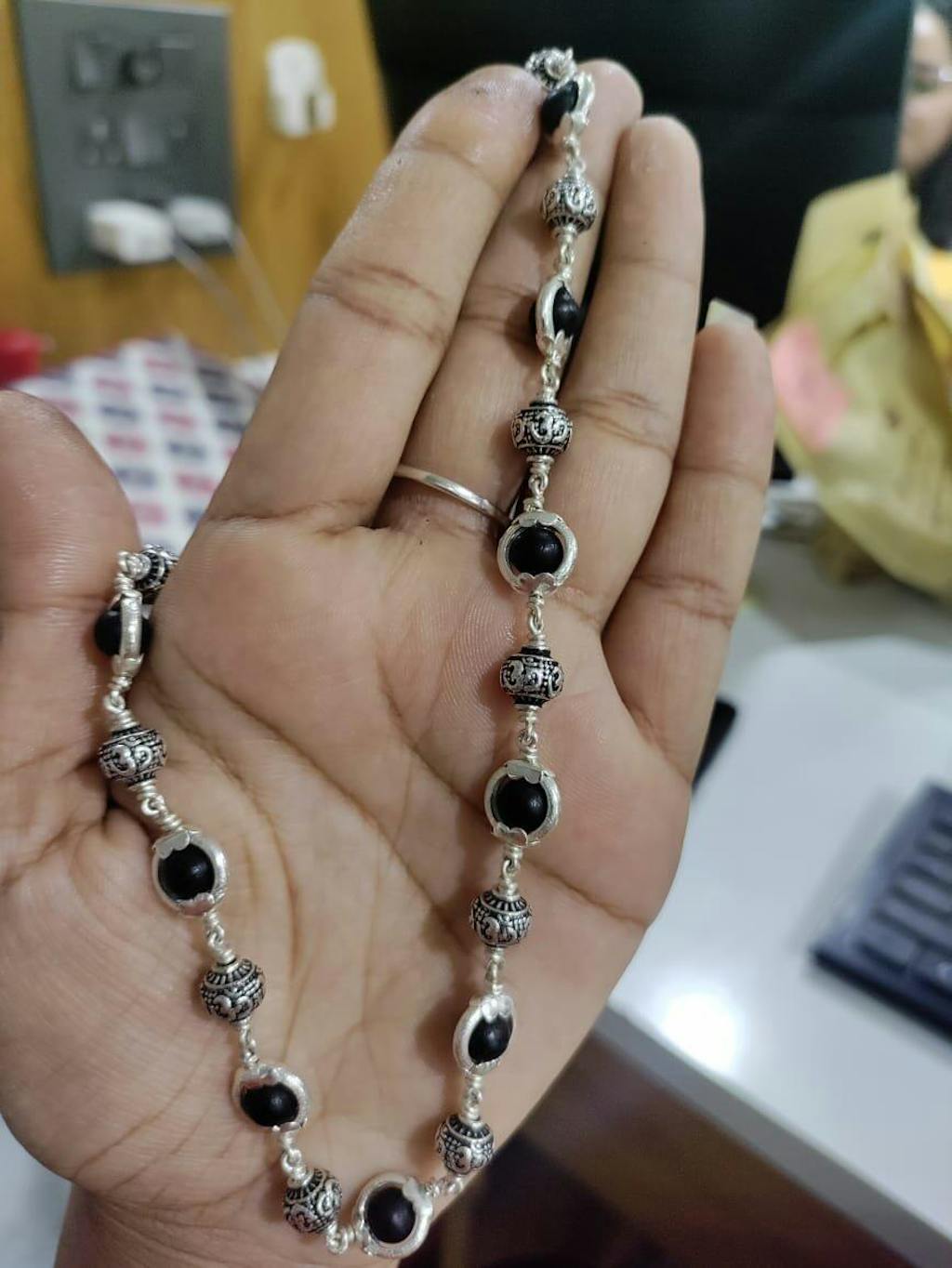 • Material: Karungali Beads + Silver Om Beads