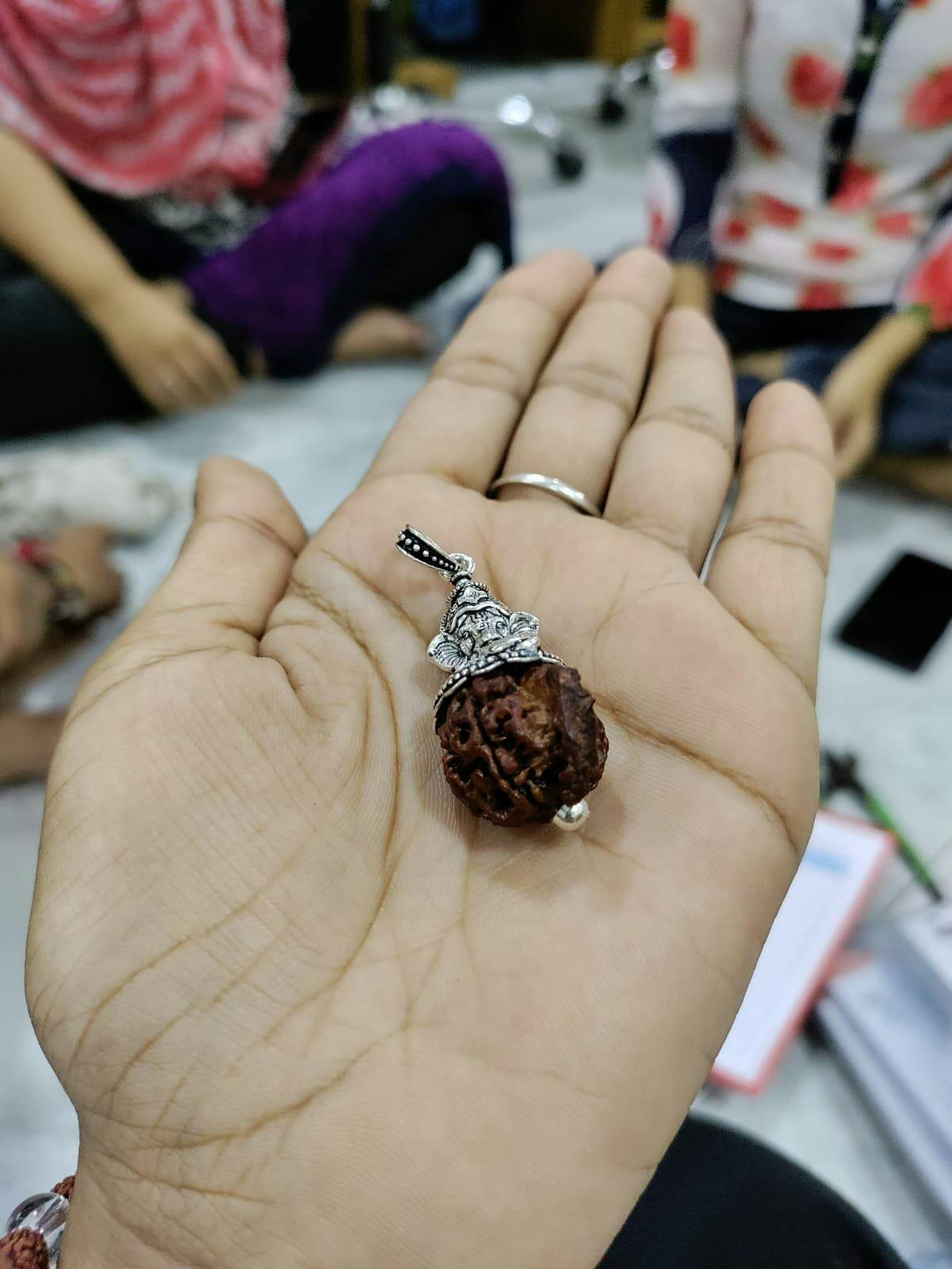 Design: Detailed Lord Ganesha bust with an authentic Ganesh Mukhi Rudraksha bead