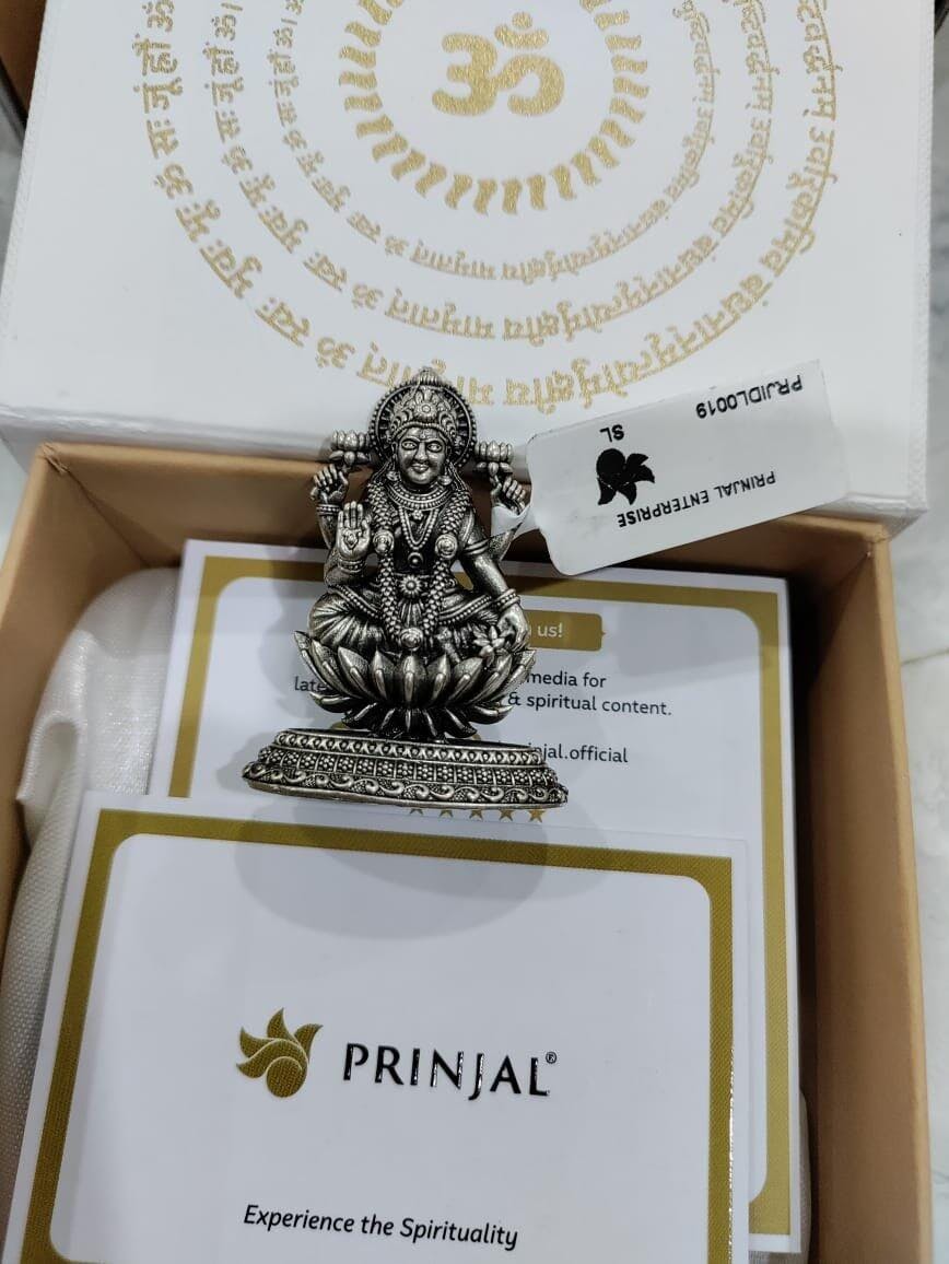 • Design: Exquisite murti of Goddess Dhanalakshmi seated on a lotus with detailed traditional ornamentation