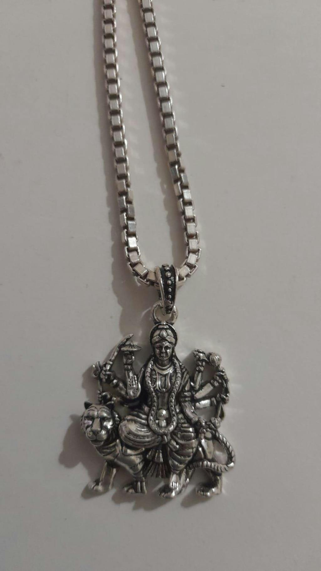 Maa Durga Silver Pendant