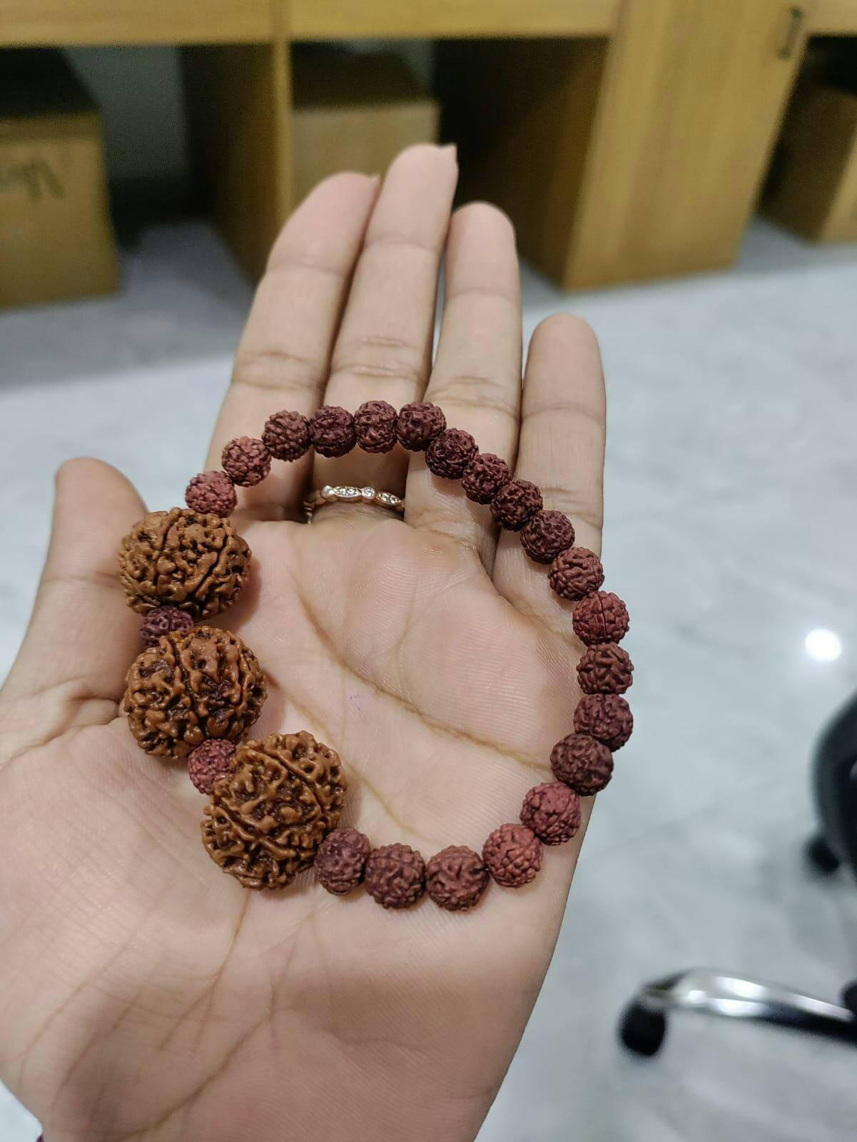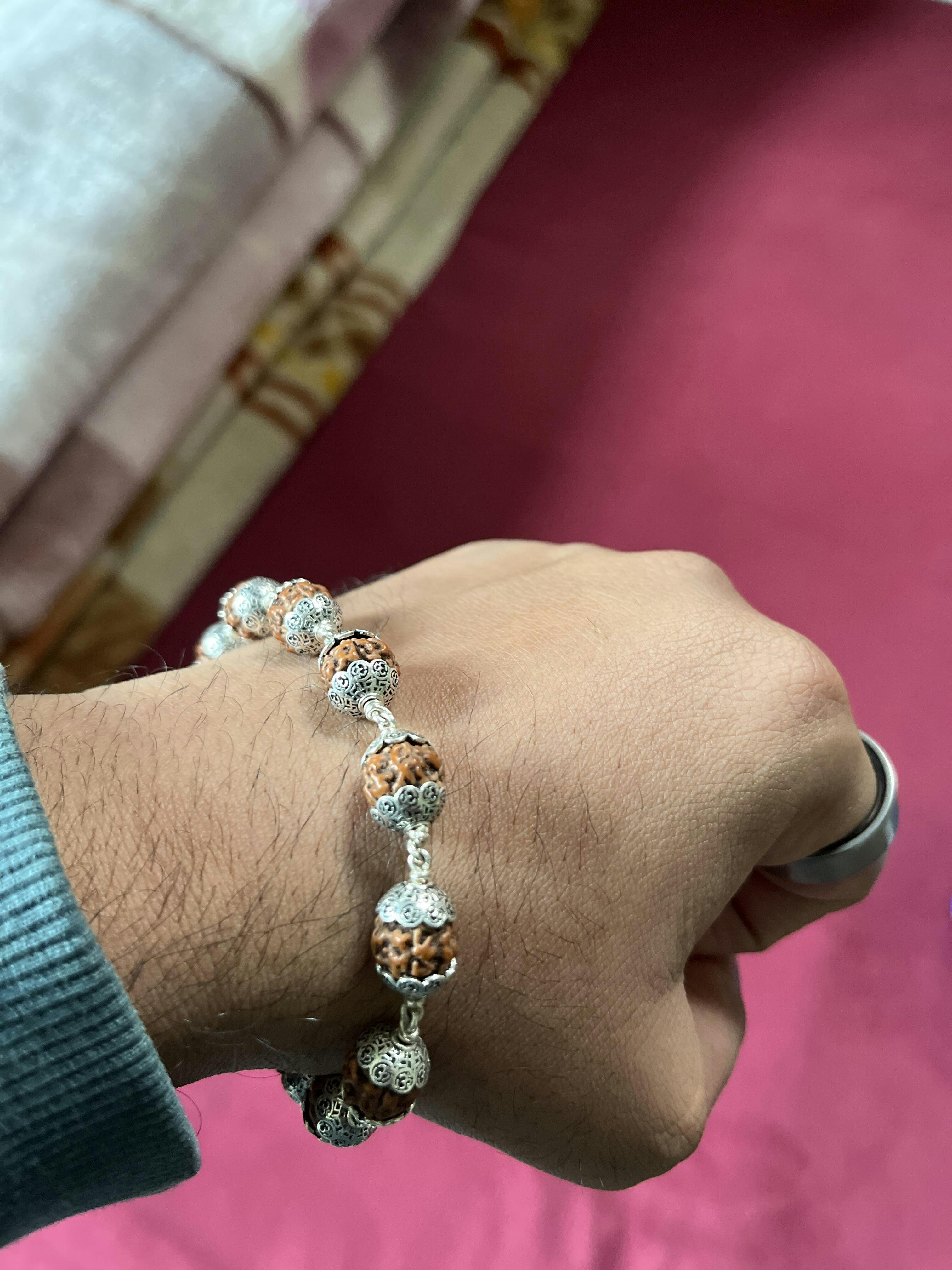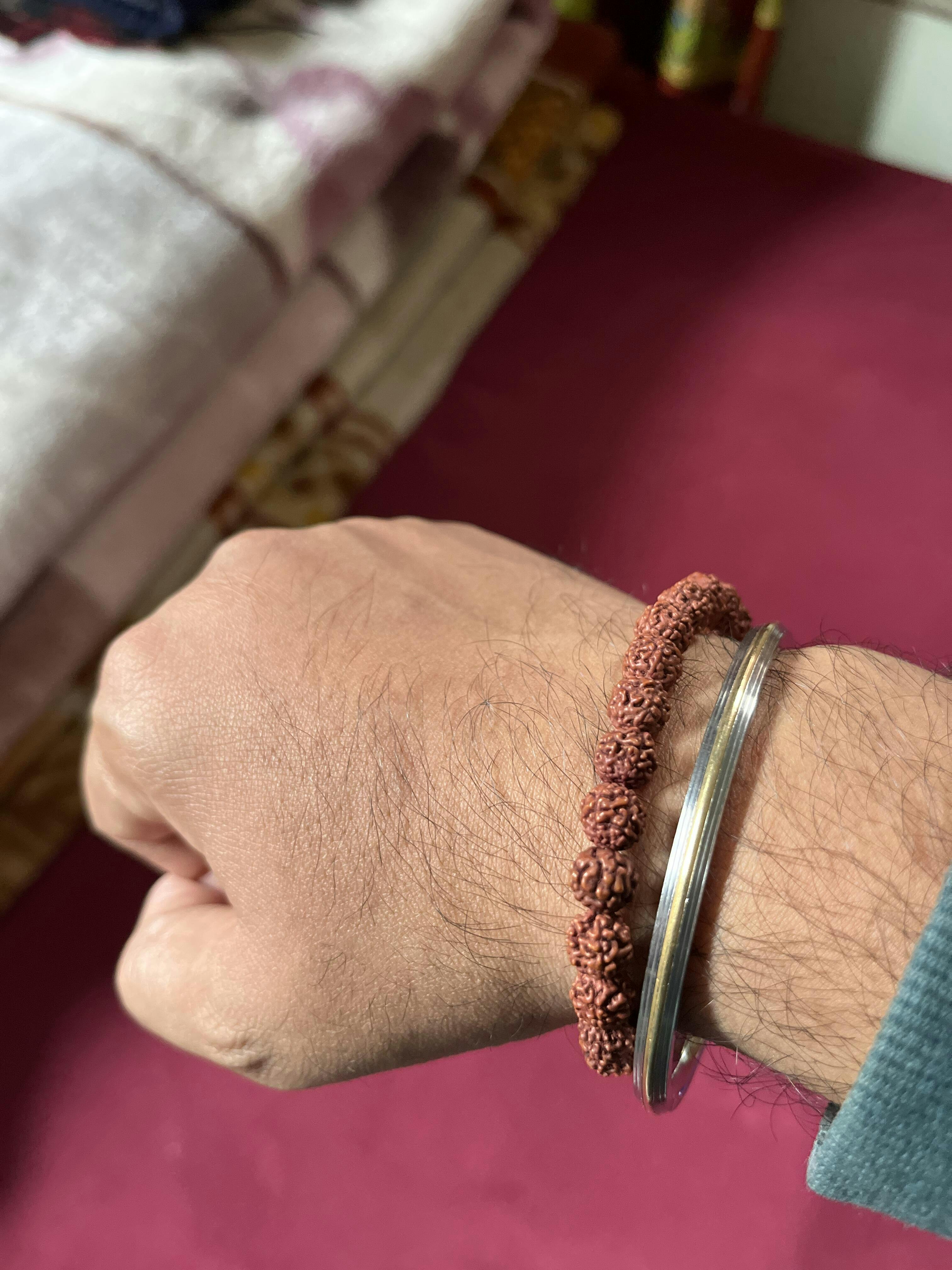 - Design: Traditional Rudraksha bracelet with stretchable thread for a comfortable fit