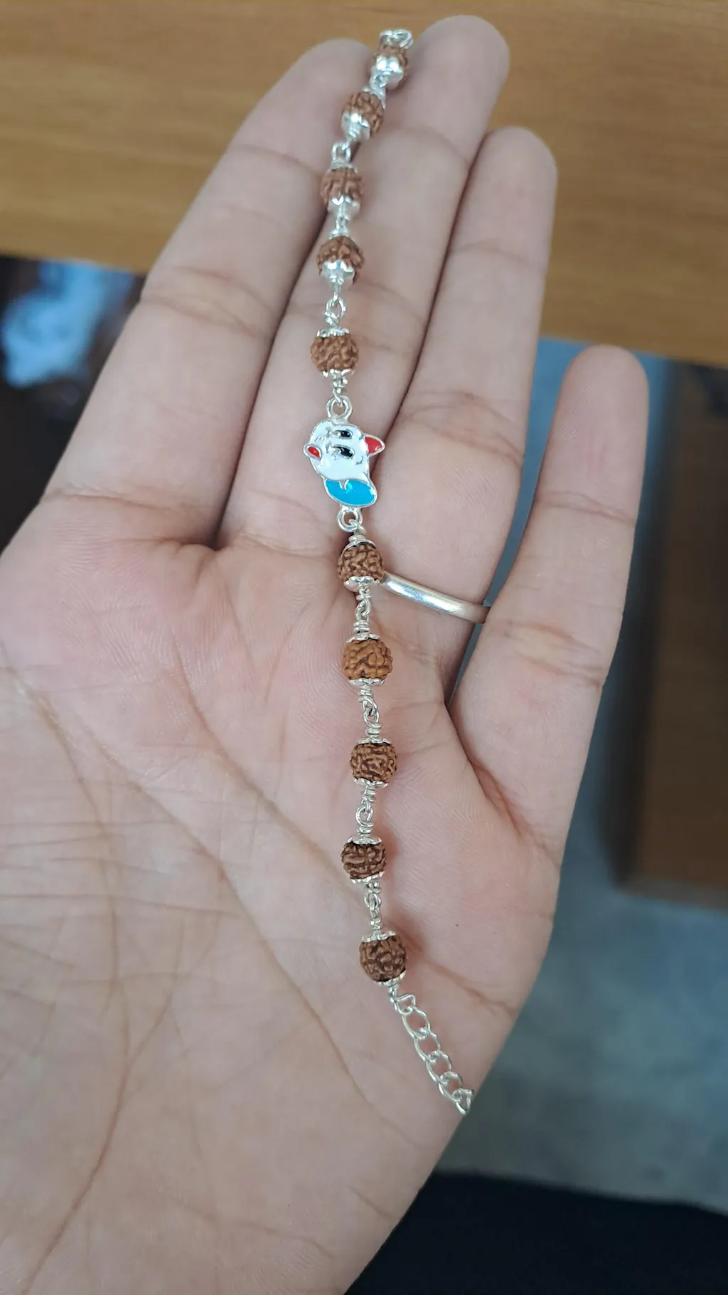 The Rudraksha Silver Bracelet with Tom Cat Single Line for Kids is a unique combination of spiritual essence and childhood happiness, making it a wonderful keepsake and meaningful gift for your little one.