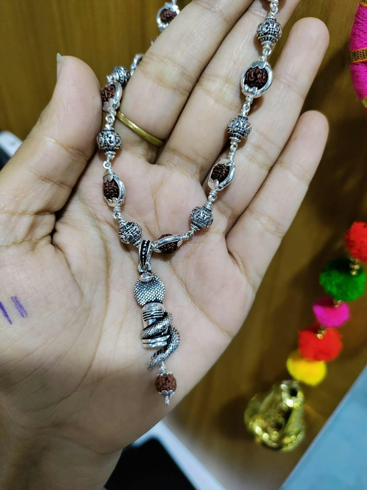 - Material: Rudraksha Beads + Silver Capping + Silver Om Beads