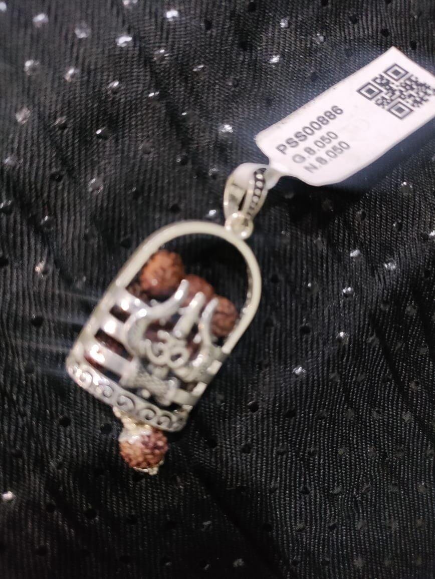 • Design: Dome-shaped pendant with Trishul, Shivling, and Rudraksha