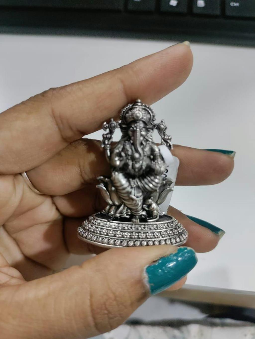 • Design: Lord Ganesha seated on a lotus with intricate carvings and a detailed crown